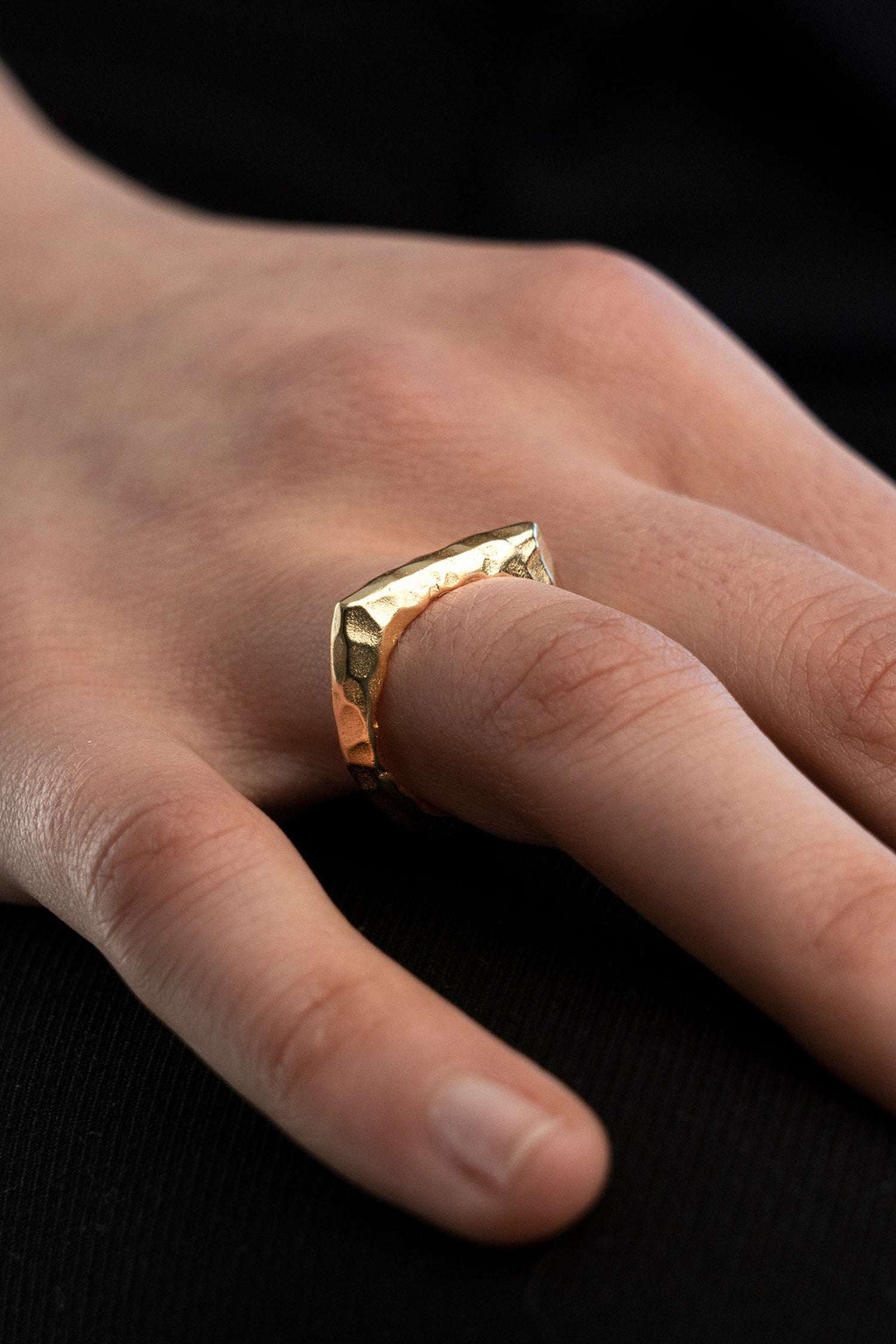 Hammered Angled Multisize Ring Gold